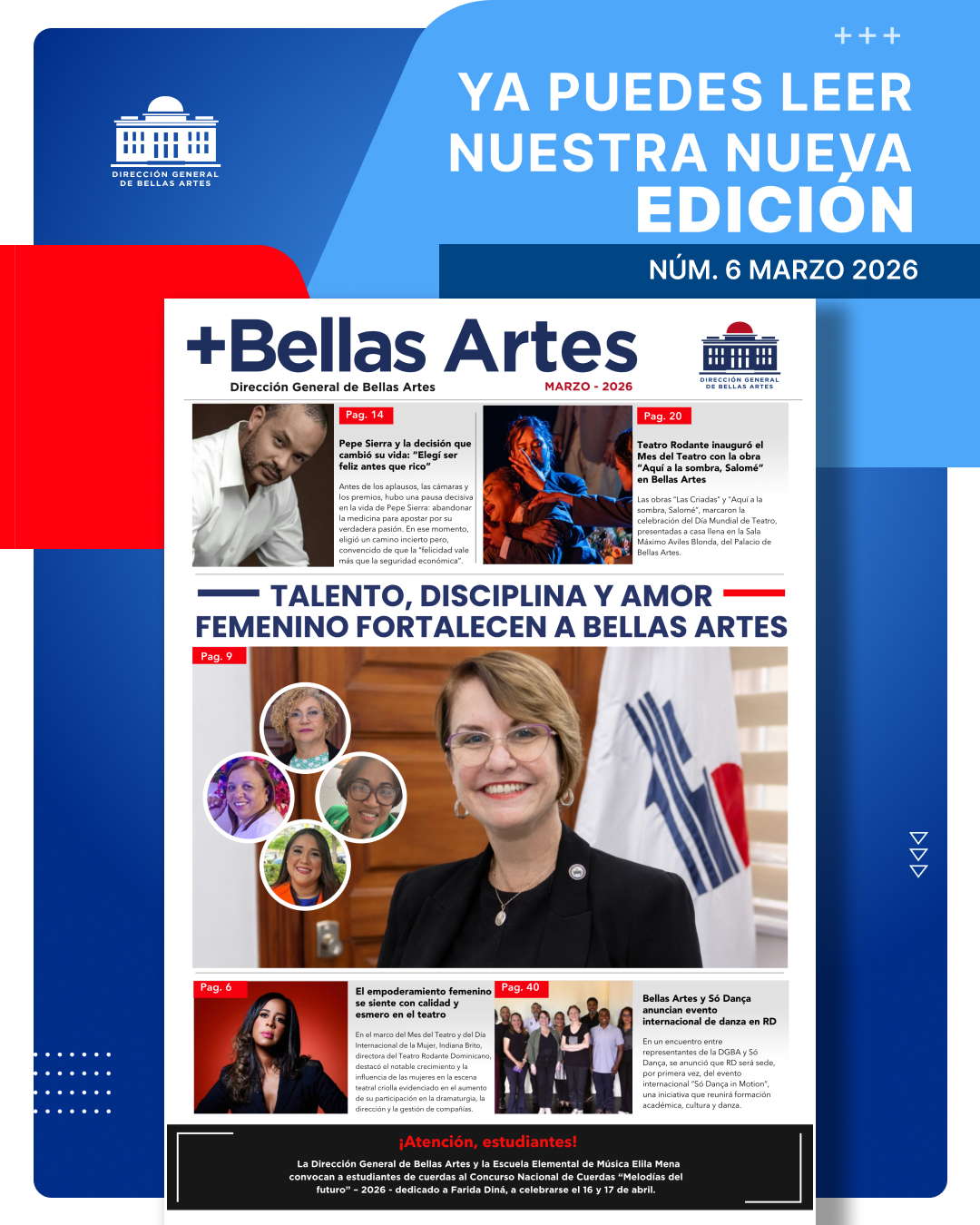 Desde Bellas Artes celebramos su impacto, su crecimiento en espacios de dirección y su papel fundamental como motor de transformación en la sociedad y el arte. Reconocemos su invaluable aporte al desarrollo artístico y cultural de la República Dominicana.