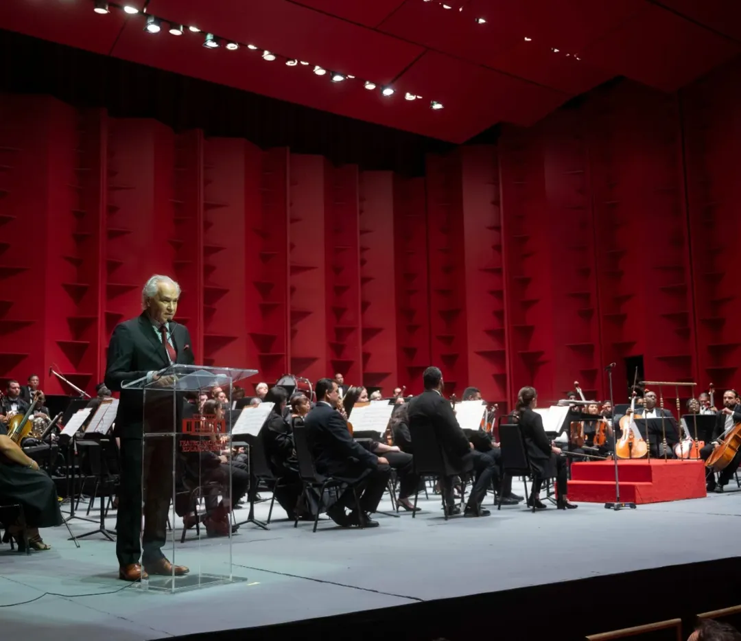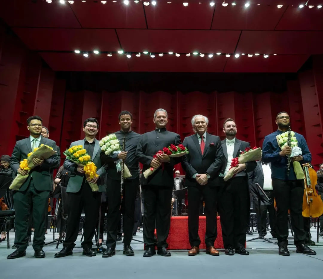 La velada reunió a amantes de la música clásica y figuras del ámbito cultural en una noche cargada de excelencia artística, bajo la dirección de los maestros invitados Guillermo Mota y Junior Basurto, quienes condujeron una presentación memorable marcada por la sensibilidad interpretativa y la calidad sonora.